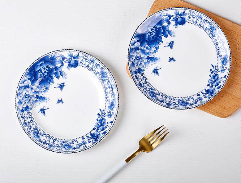 Jingdezhen Ceramic disc 7 inch 8 inch 10 inch Bone Disc Creative Plate Shallow Dish Round Dish Dinner Plate Domestic Butterfly