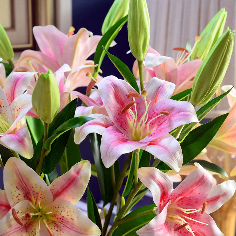White (2 flowers 1 bud) pink (2 flowers 1 bud) champagne (2 flowers 1 bud) lily pink 2-rose 3 support pink 3 white 2 branched pink 3 champagne 2 powder color 5