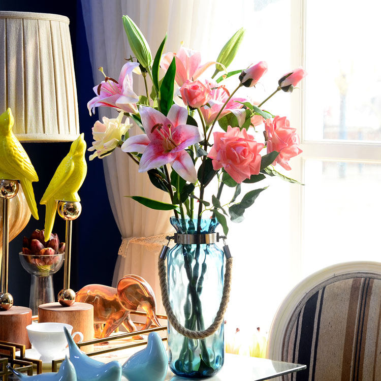 New 3-head upscale hand feel permalink Bathyflower emulated flower swing piece living-room furnishing flower table flower pendulum flower fake flowers