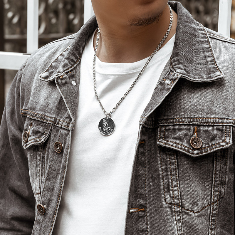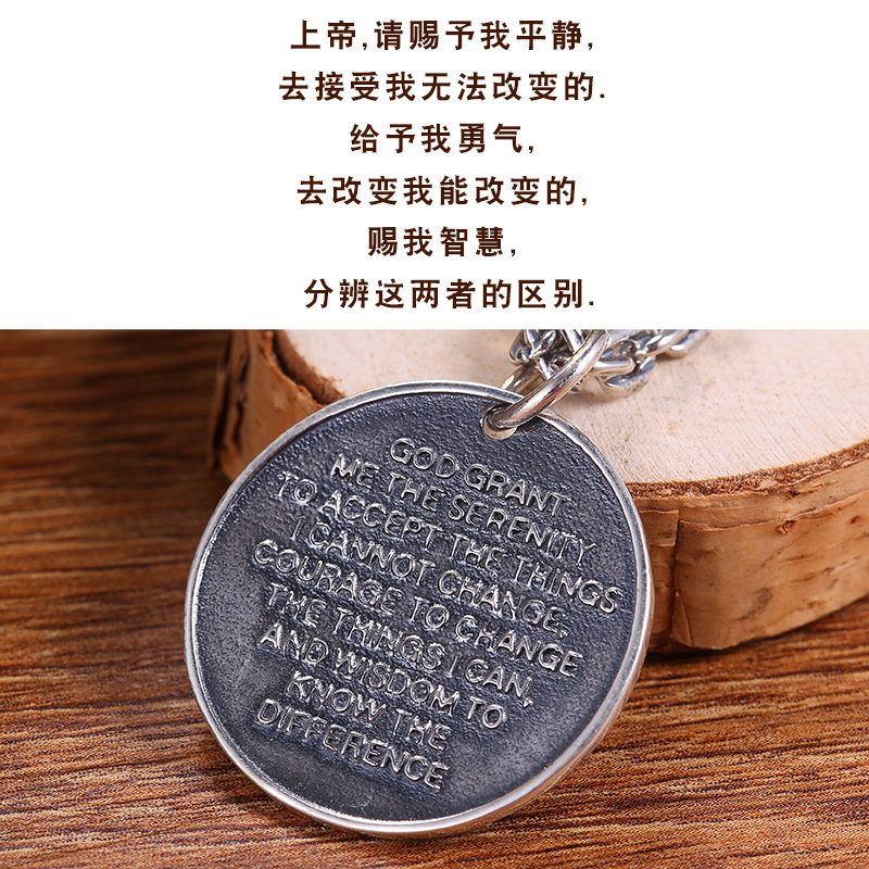 Rotai Old Silversmith 925 silver necklace Male silver jewelry tide niche design tag Vintage Prayer Hand Pendant coin