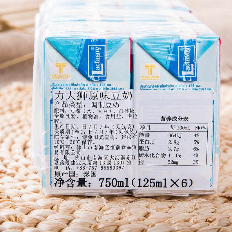 Thai Import Force Great Lion Original Taste Bean Milk 125ml * 6 boxes Students Children's Breakfast Nutrition Good Drink Drink