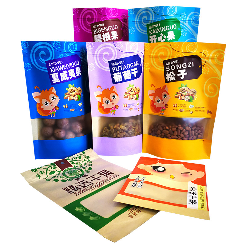 Dried Fruit Kraft Paper Packing Bag Self-proclaimed Pocket Pistachio Grape Dried Hawaiian Fruits Customized Beigan Fruit Paper Bag