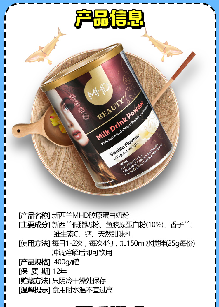 New Zealand MHD collagen milk powder high calcium tender white pure fish peptide papaya frozen aged milk lady Australia 400g