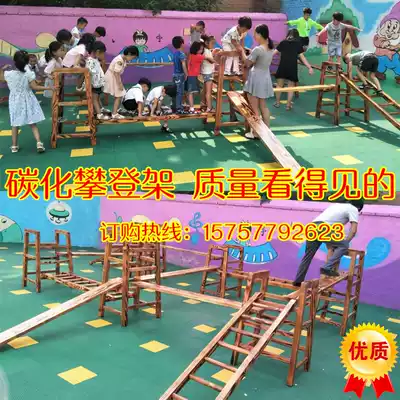 Kindergarten outdoor climbing frame carbonized wood 16-piece set of children's physical balance beam sensory integration training equipment combination