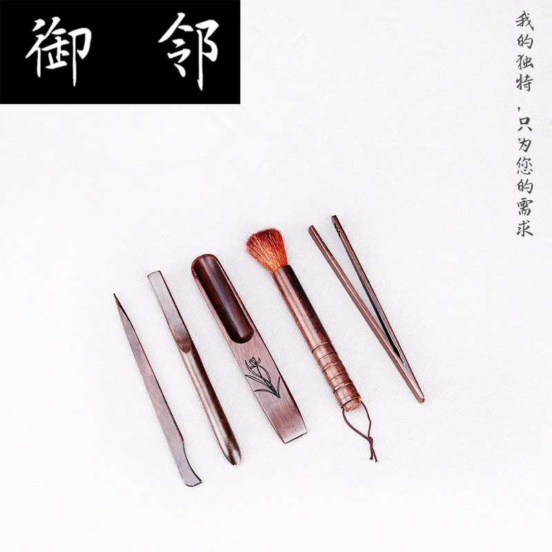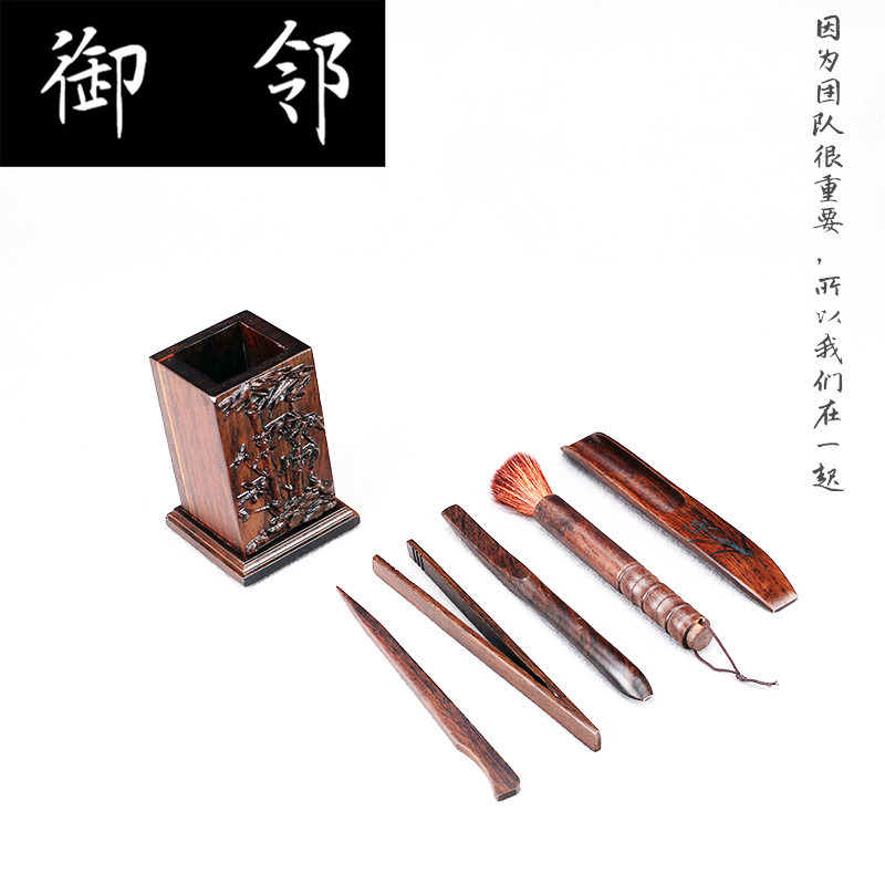 Black Sandalwood Solid Wood Tea Walk Six Gentleman Tea Art With Tea Needle Tea, Tea Clip Tea Barrel Teaspoon Teaspoon Teaspoon Teaspoon Tea Accessories