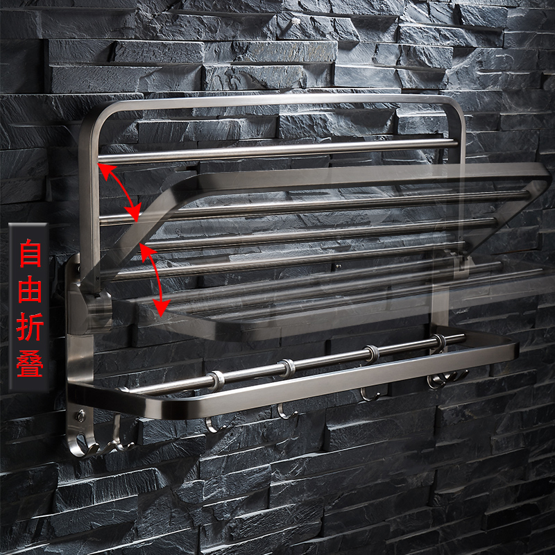 Bathroom hanging shelf for drying towels Stainless steel brushed bathroom hand washing storage Nordic powder room punch-free type