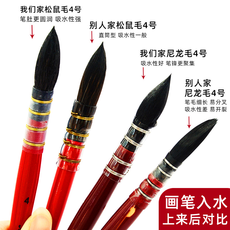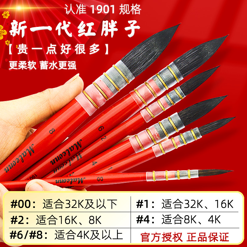 Red Fat Man Watercolor Pen Squirrel Hair Brush Set Malang Black Swan Round Head Animal Brush Fine Art Student Special Blue Nylon Row Pen Flat Head Board Brush Painting Hook Line Solid Pigment Brush