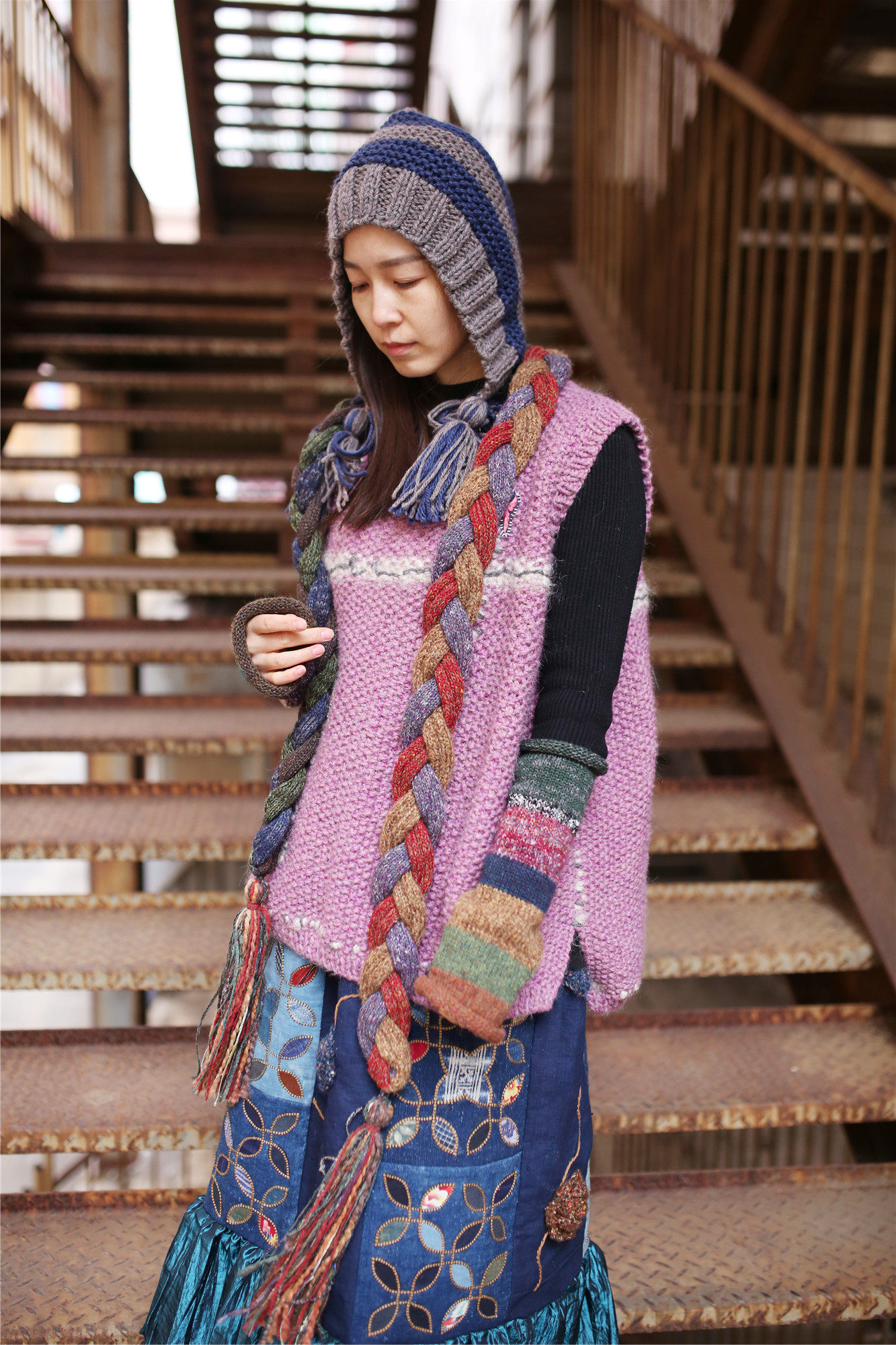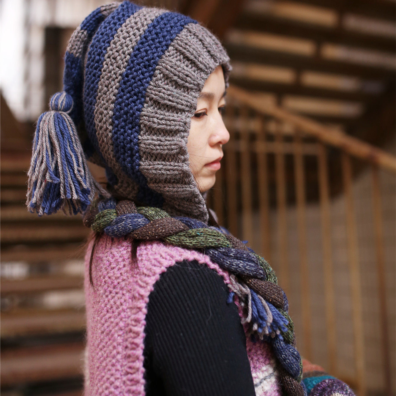 Qian Ai Forest Twilight ~ Qian Ai Forest original literary fan retro pure handmade wandering wool thread ear protection hat