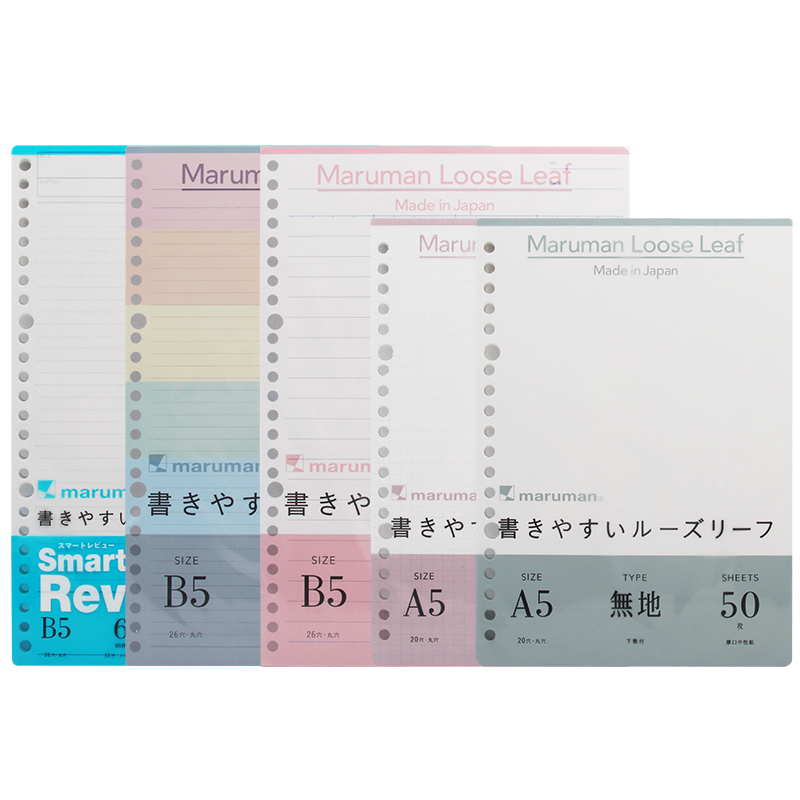 Japan maruman Man Lewen loose-leaf paper core B526 hole loose-leaf paper core kurufit checkered horizontal line blank English A4 loose-leaf paper Student hand account notebook core A5 color