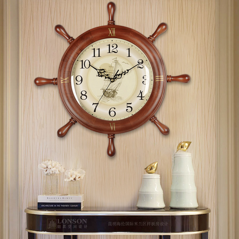 Han clock watch living room solid wood rudder wall clock creative clock European style personality wall clock Silent quartz clock HW39