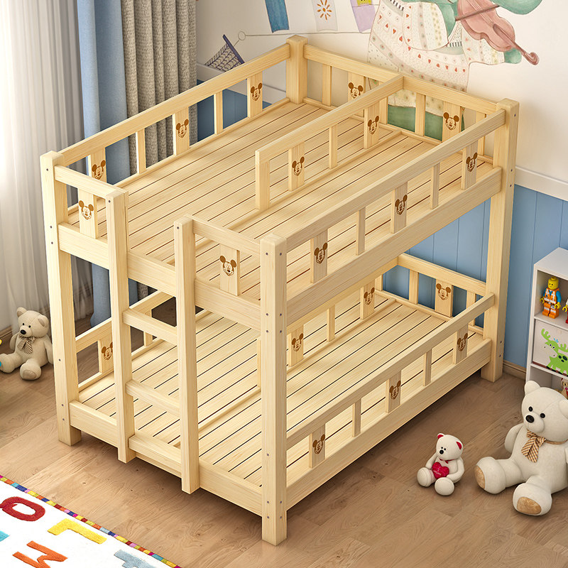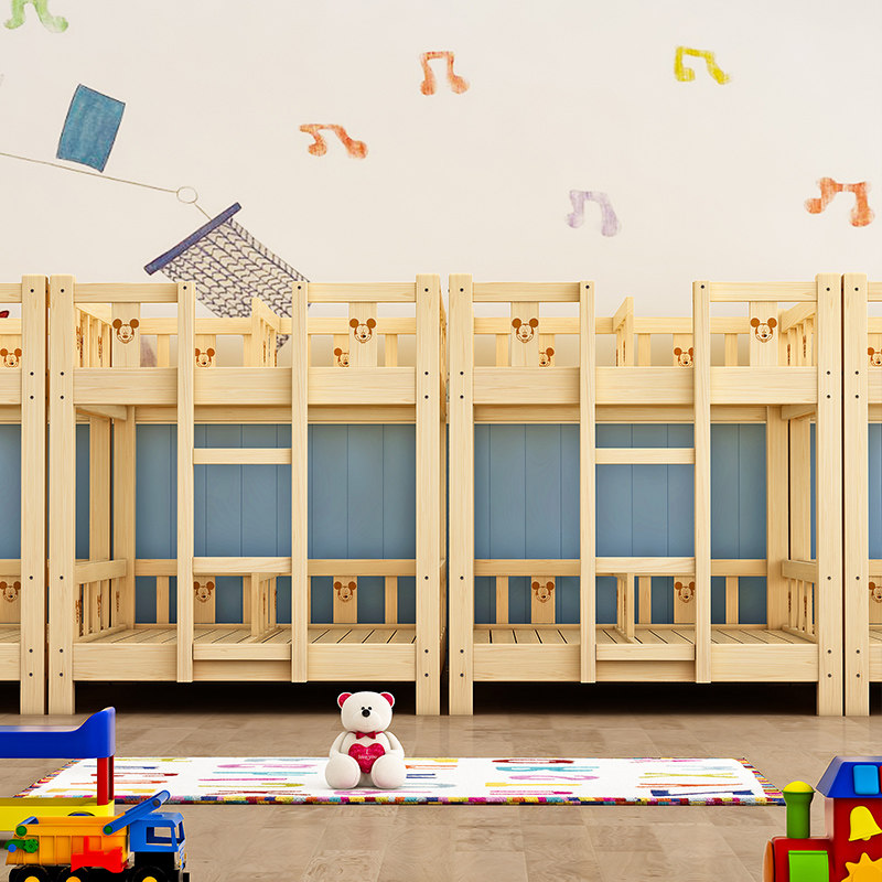 Kindergarten solid wood bed Double bunk bed Four-person high and low bed Children's lunch break bed Primary school pine lunch break bed