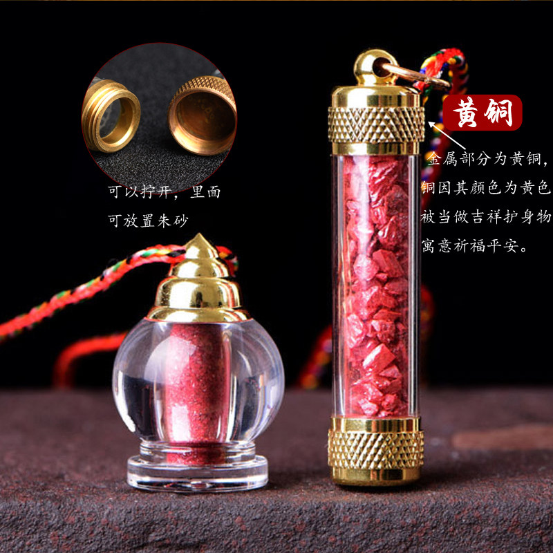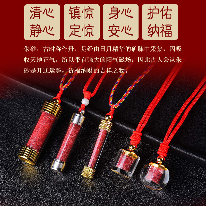 Cinnabar crystal rough stone powder pendant bottle Male and female baby Gawu box pendant Children's evil necklace portable pendant