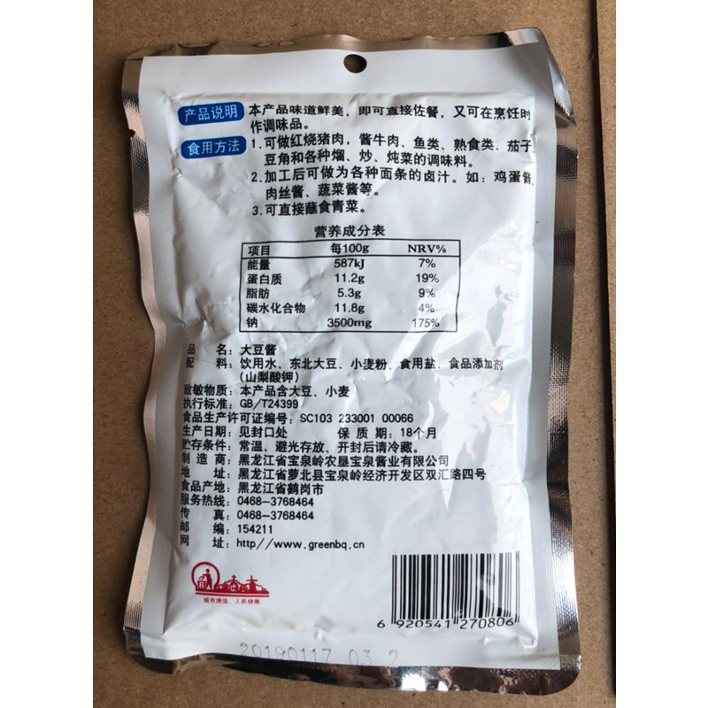 Baoquan Ling Old General Large Bean Sauce Bagged 150 gr * 15 Bag Northeast Great Sauce North Great Wilderness