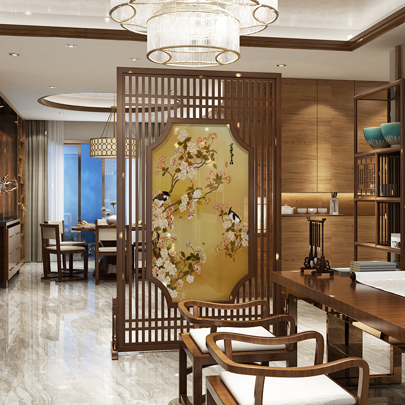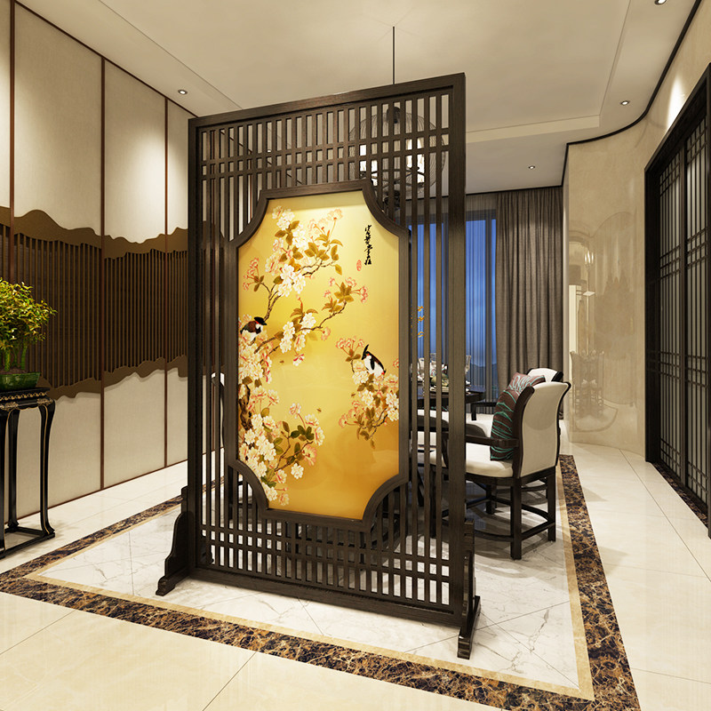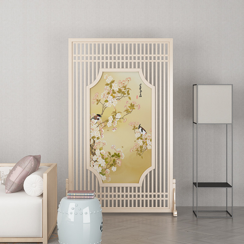 Modern New Chinese Solid Wood Diversity Mega Living Room Mobile Seat Screen Bedroom Screen Hotel Customized Design White Wax Wood