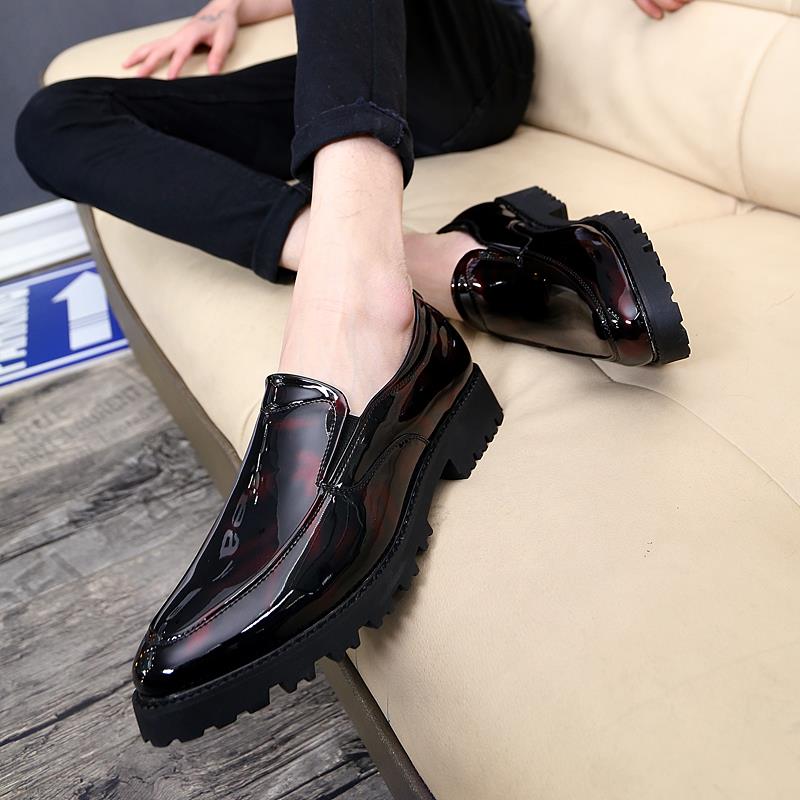 2022 new Korean version thick-soled leather shoes pointy hair stylist British small leather shoes fashionable bright face inner heightening men's shoes