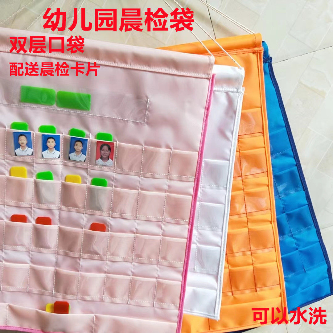 Upgrade kindergarten double-layer pocket morning inspection bag insert card into the district card bag sign-in card perspective health card bag morning inspection card