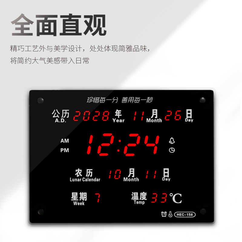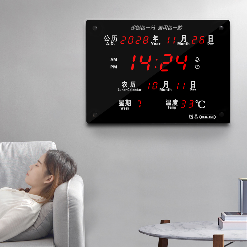 Hechuang Digital Perpetual Calendar Living Room Creative Wall Hanging Electronic Clock Luminous Calendar Clock HEC-158
