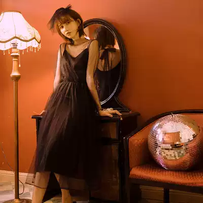 21 Early autumn ancient Hepburn Halloween small black light wedding dress soft gauze puffy dress annual meeting light dress can usually be worn