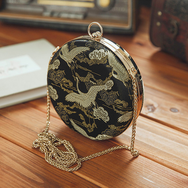 Handmade Silk Crane Box Retro Dinner Messenger Shoulder Bag Female 2022 New Messenger Bag Round