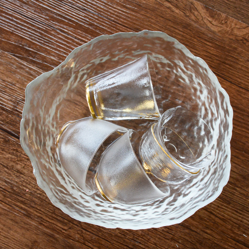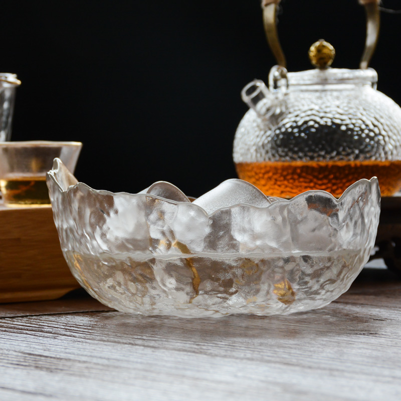 Tea washing household set Large glass transparent Jian light water bowl cup washing tea set accessories Tea washing tank Japanese retro