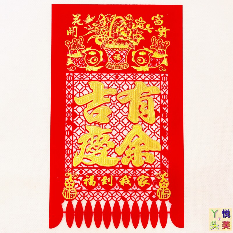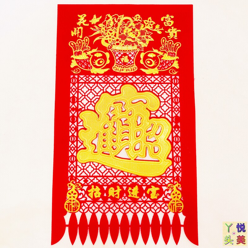 New Year's red bronzing flocking cloth hanging money hanging money New Year hanging money Spring Festival supplies paper-cut window glass stickers door stickers