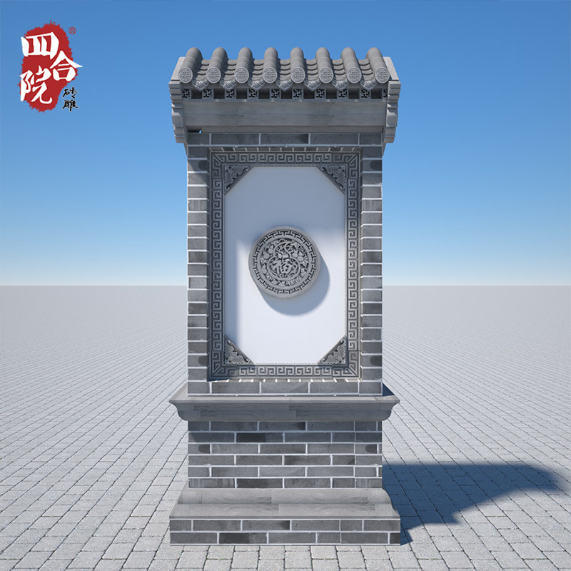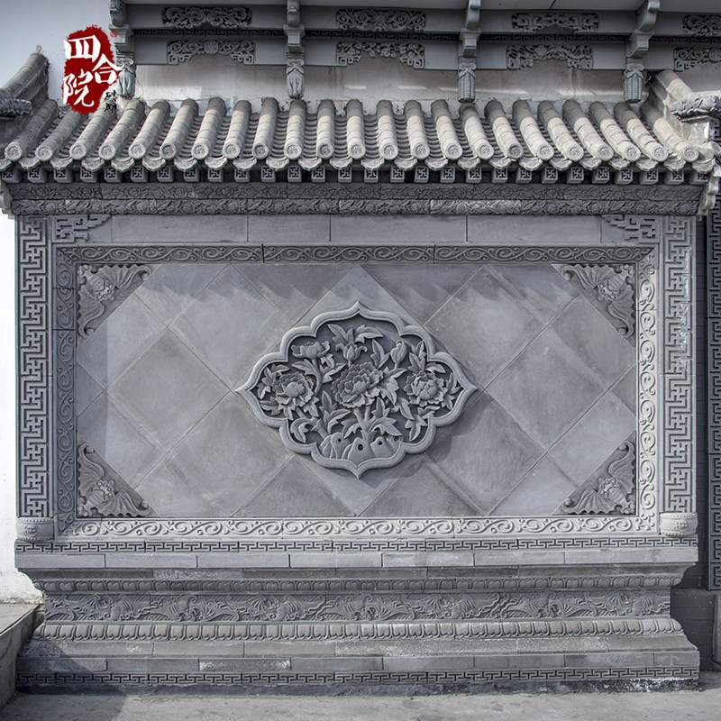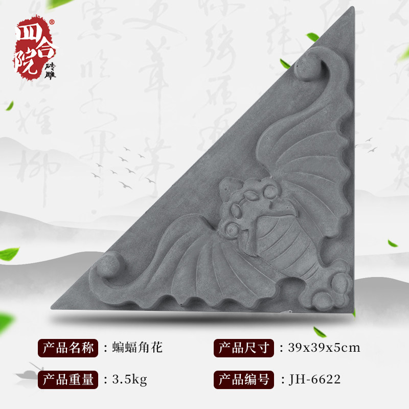 Four-in-courtyard brick-sculpted antique mirror wall right angle background wall decoration 39cm bat corner flower JH6622 green brick