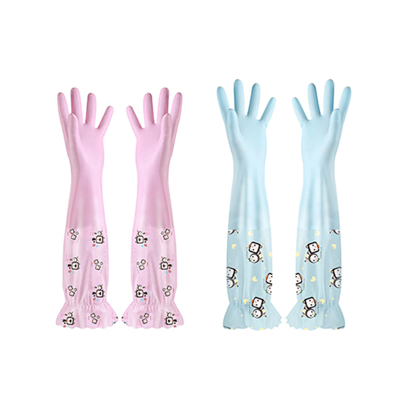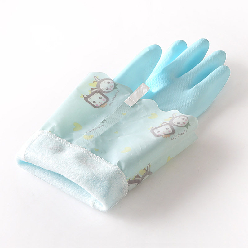 Dishwashing gloves female kitchen thicker rubber latex washing clothes waterproof plastic rubber leather household durable brush bowl plus velvet