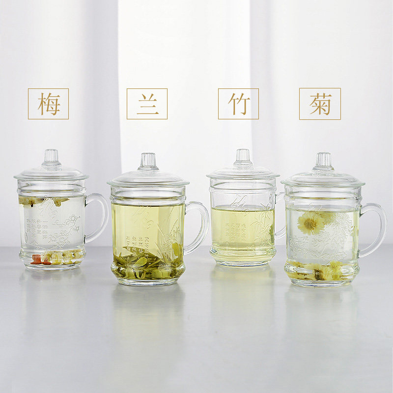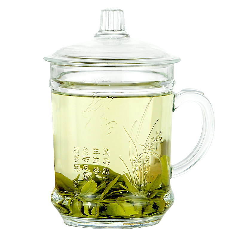Van Kachi glass Household heat-resistant drinking blisters Teacup Office lid Men's water cup with handle with lid