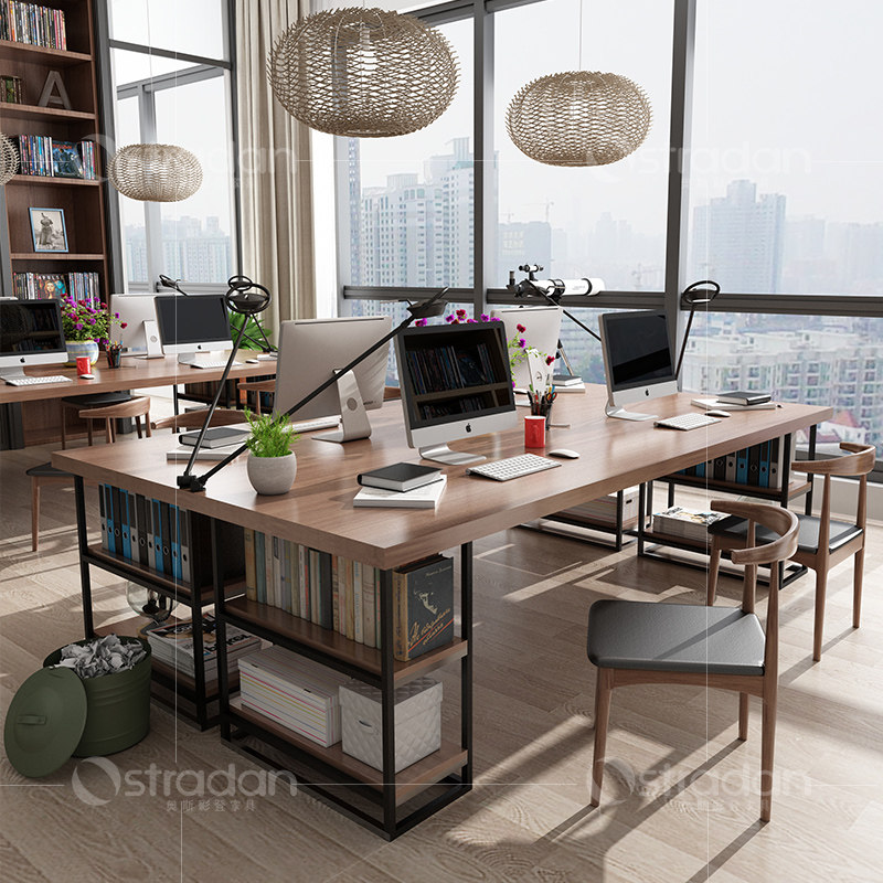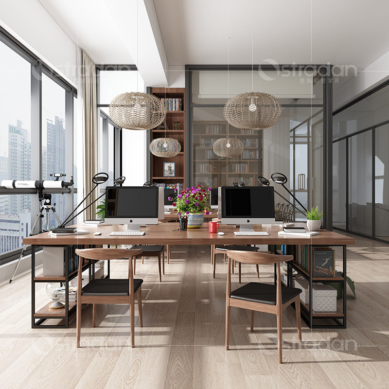 Solid wood office table and chair combination company staff office furniture office desk 4 people 8 people computer desk station