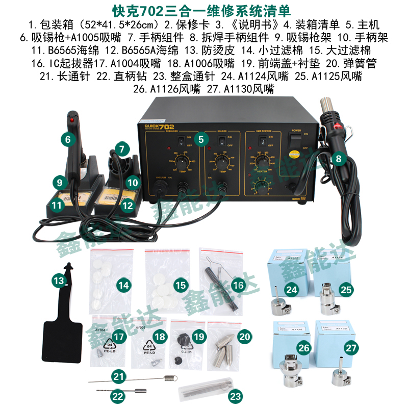 Quick 702 three-in-one repair system QUICK mobile phone welding soldering station suction tin gun straight air hot air gun desoldering station
