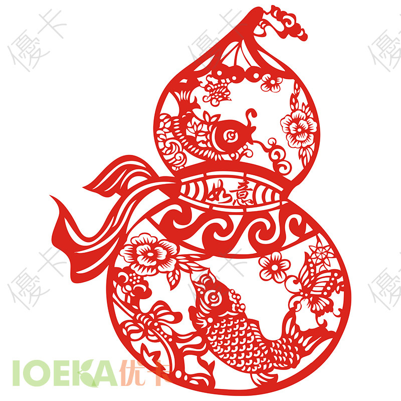 Auspicious Ping An Ruyi Fulu gourd cut paper window flower applique with glass decoration sticker (Ruyi gourd) CH0709