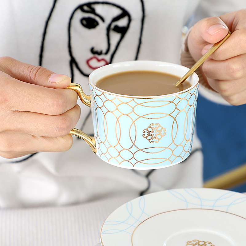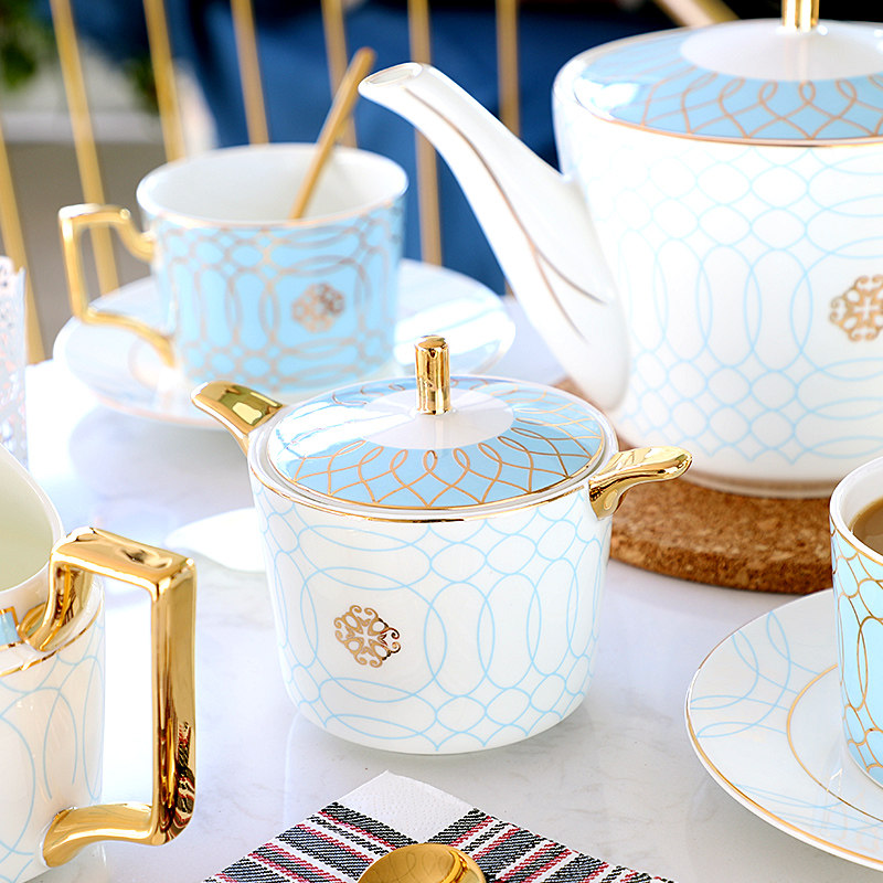 European afternoon tea set English coffee cup bag gold bone porcelain teapot home coffee set small luxury
