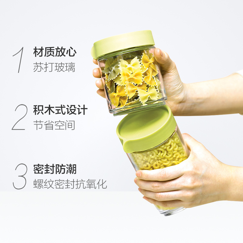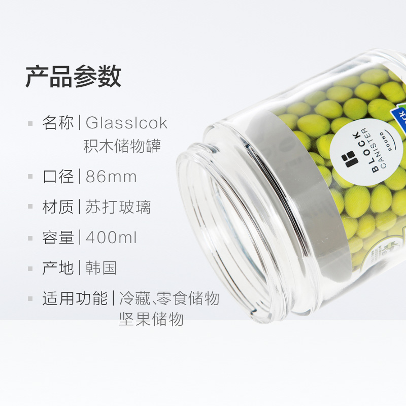 GLASSLOCK glass sealed jar tea jar building block storage jar 400ml stackable refrigerator side door can be placed