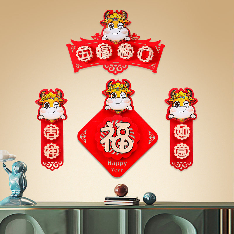 Year of the Ox creative couplets 2021 New Year Spring Couplets New Year Spring Festival decoration decoration Housewarming gate High-end Hunchun Door couplets