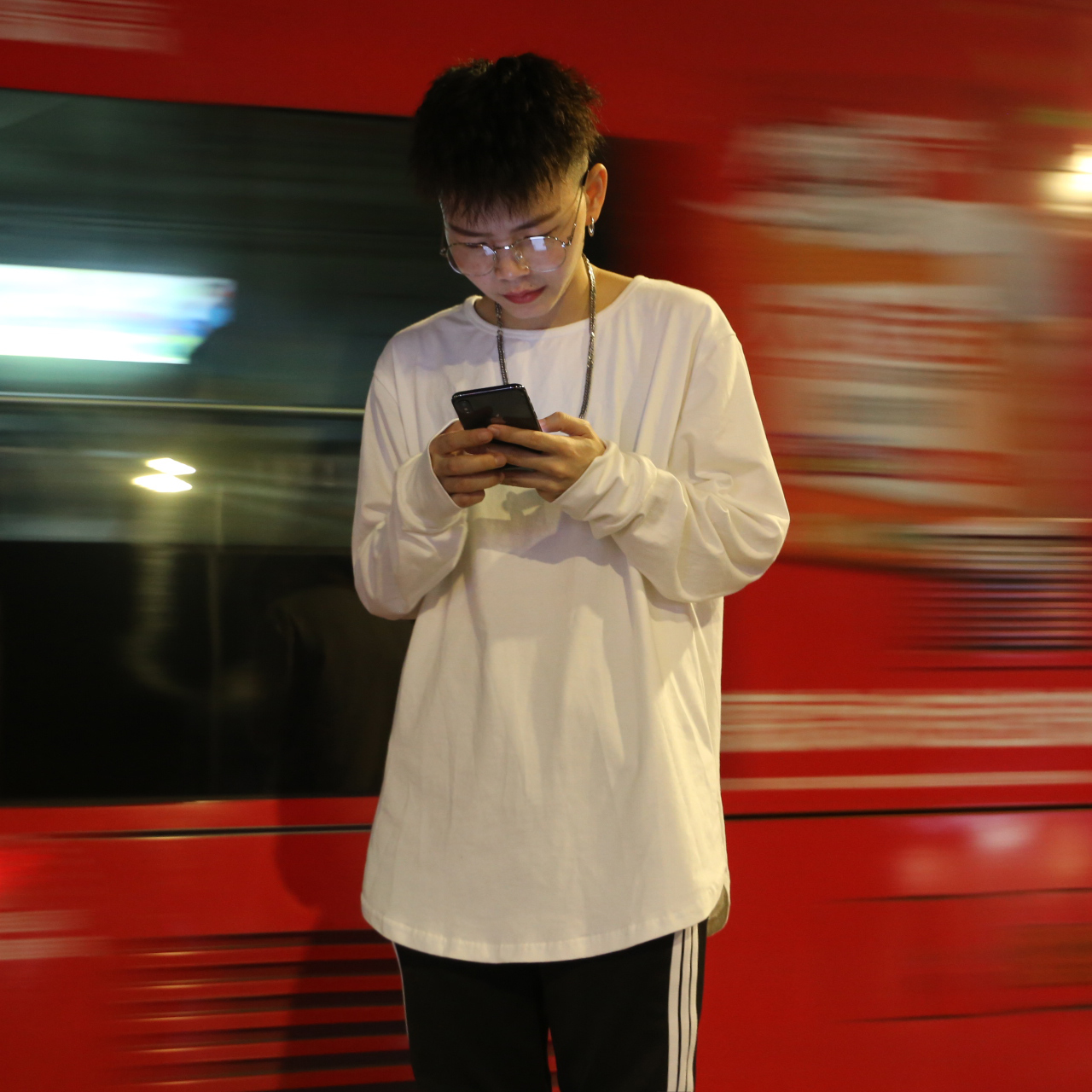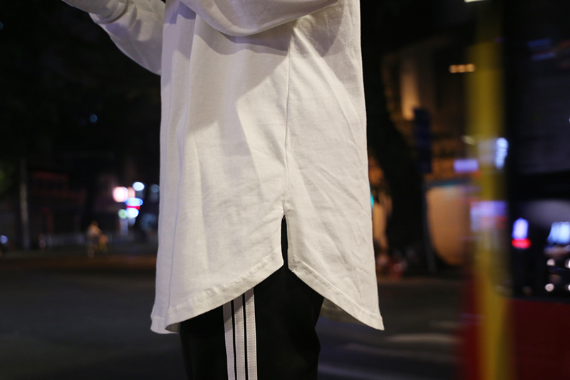 KANYE European and American long-sleeved T-shirts for men and women with arc hem dark high street tide brand ninja hooded sleeves with bottoming shirts