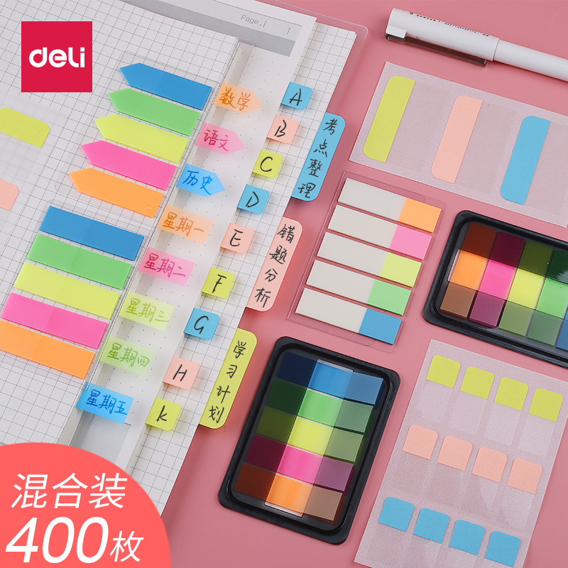 Deli Fluorescent post-it note sticker Label Index sticker Classification Paging note page number instructs students to mark handwritten self-adhesive book stickers with transparent color post-it note strips