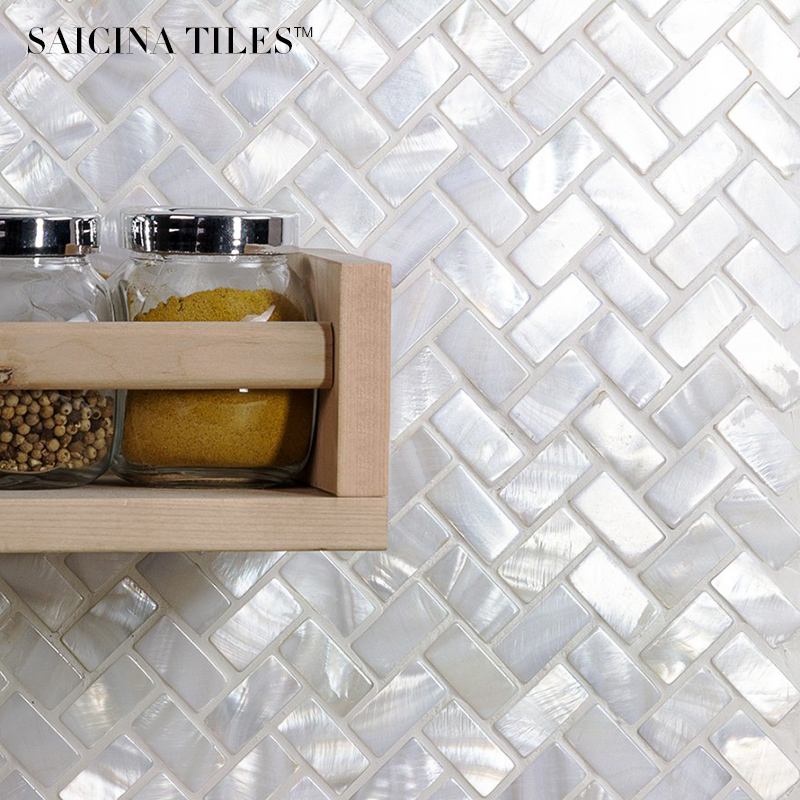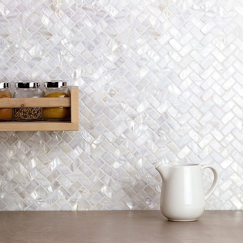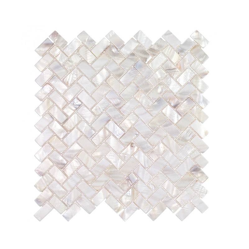 Nordic style natural ultra-white pearl shell mosaic Kitchen tile herringbone arrangement powder room background wall