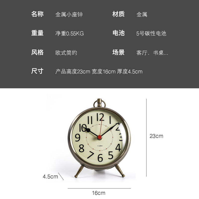 Metal vintage clock desk clock Household European living room luxury pendulum clock Large table clock Desktop pendulum Desktop clock ornaments