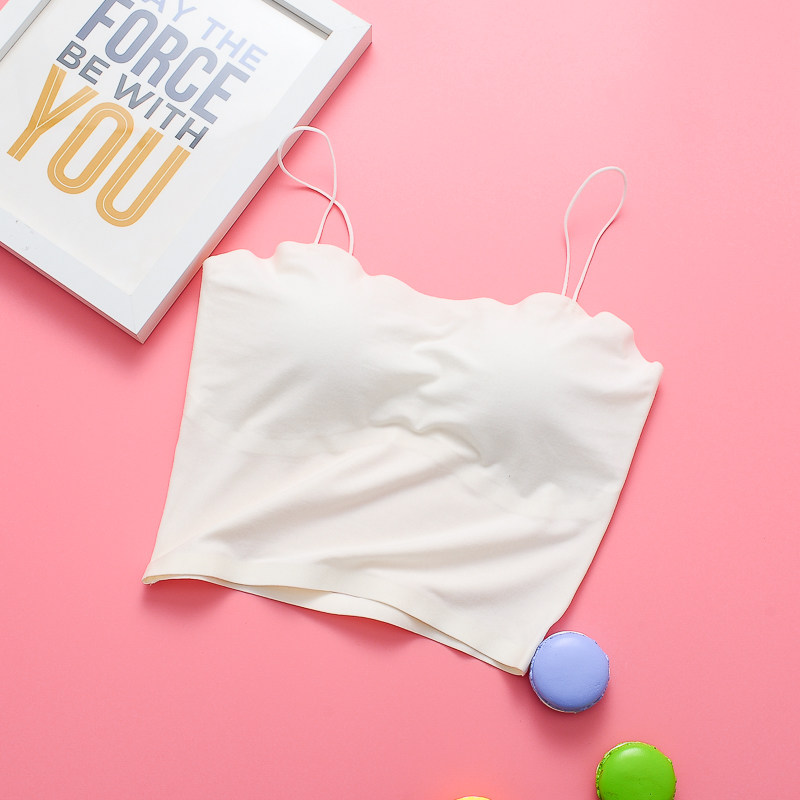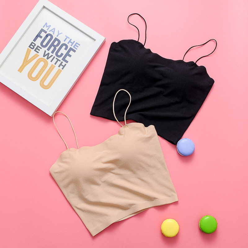 Black cotton vest women's long version of beautiful back thin shoulder strap small sling anti-light belt chest pad