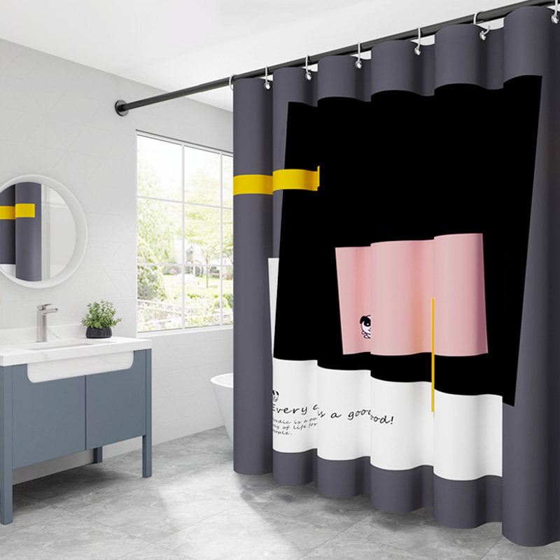 Fun Cartoon Bath Curtain (Single-Curtain) Fun Cartoon Bath Curtain (Curtain Black Bar) Fun Cartoon Bath Curtain (Curtain Black Bar Black Water Retaining Strips) Marble White (Single-Curtain) Marble White (Curtain Black Bar