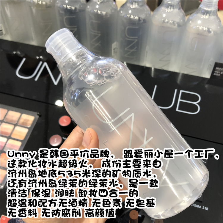 South Korean unny makeup remover water face gentle deep cleaning without irritating eye lip student with zero residue