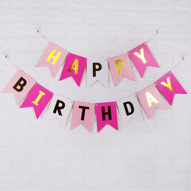 Birthday decoration Banner hanging decoration Pull flower color flag Proposal confession supplies Party balloon background wall trunk decoration