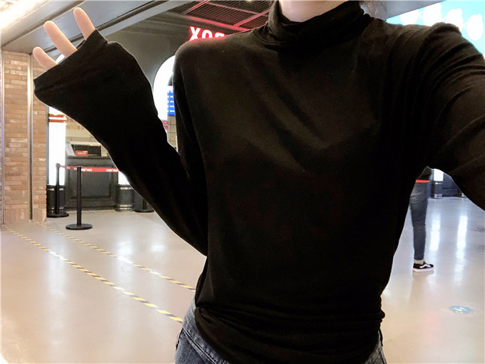 Special BORAKOO Korea Dongdaemun winter 2 colors~back neckline buttons~High neck elastic silk cotton base shirt T