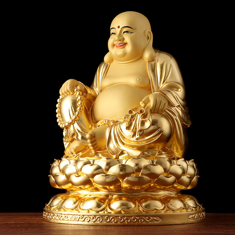 Yuantong Buddha Taiwan pure Copper paste true Gold Maitreya Buddha Buddha open belly Maitreya laughing Buddha Home worship ornaments