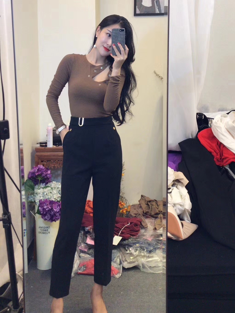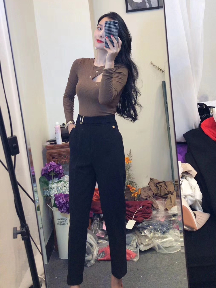 Suit pants women's straight high waist thin cigarette tube pants 2021 spring and summer new women's pants Korean version of nine-point pants women's casual pants