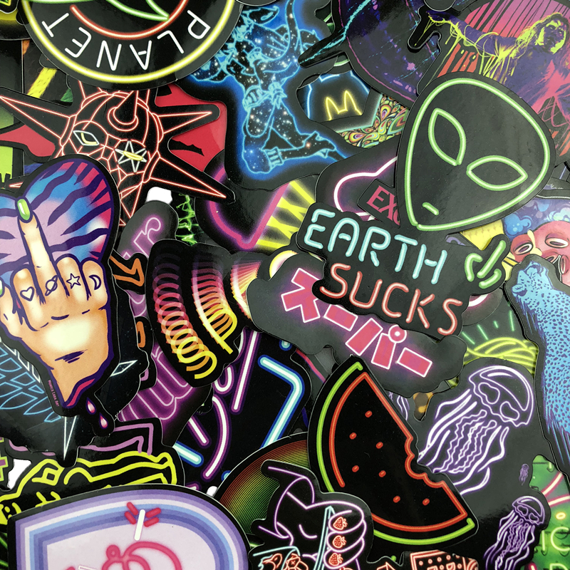 75 cartoon ins wind neon wind suitcase notebook guitar stickers waterproof stickers