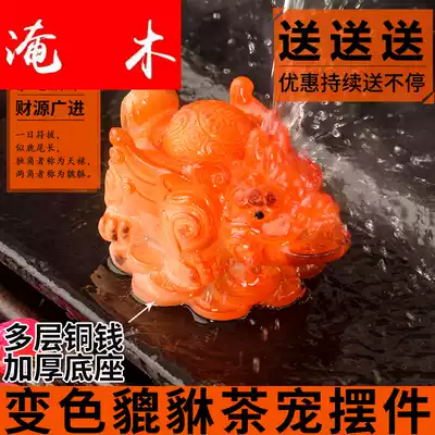 Flooded Wood tea pet ornaments discoloration tea worm spray tea pet color change Tea play Golden Toad accessories Tong pet can be raised
