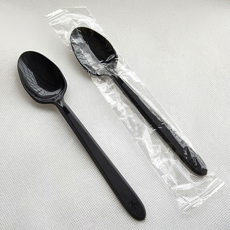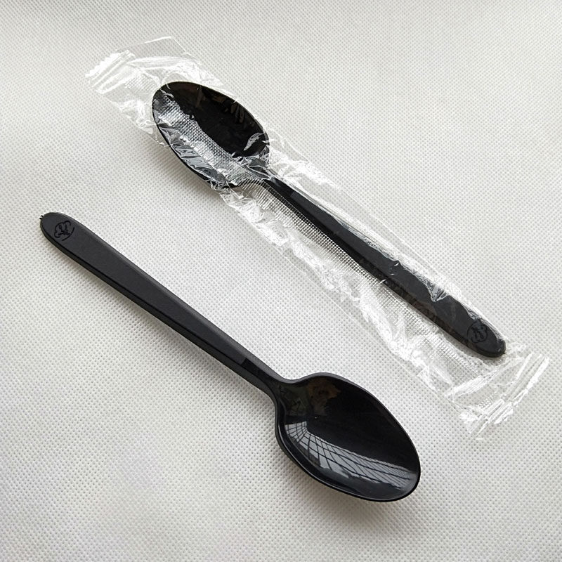 Thickened disposable individually packaged black spoon Western plastic spoon 17CM knife and fork spoon Dessert spoon burning fairy grass spoon