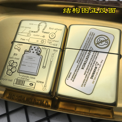 Beauty version ZIPPO Lighter silver armor Double face convex engraved firestone box liner decomposition chart with permanent seal