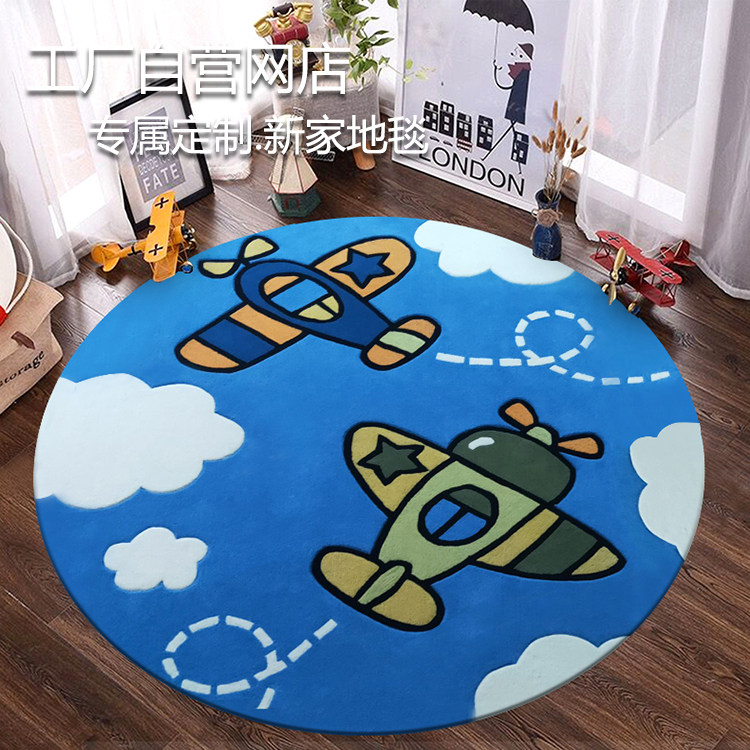 Cute boys room round cartoon space plane blue study computer chair import wool bedroom children's carpet